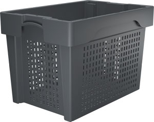 Die Drehstapelbehälter sind sowohl in geschlossener Form als auch mit durchbrochenen Böden und/oder durchbrochenen Seiten erhältlich. Neben Griffmulden sind auch Varianten mit zwei Grifföffnungen möglich. Die Grundfläche beträgt bei unseren Standardgrößen 400 x 300 Millimeter, alternativ 600 x 400 Millimeter. Wir bieten zudem verschiedene Arten von Deckeln an, um den Inhalt der Behälter zu schützen.