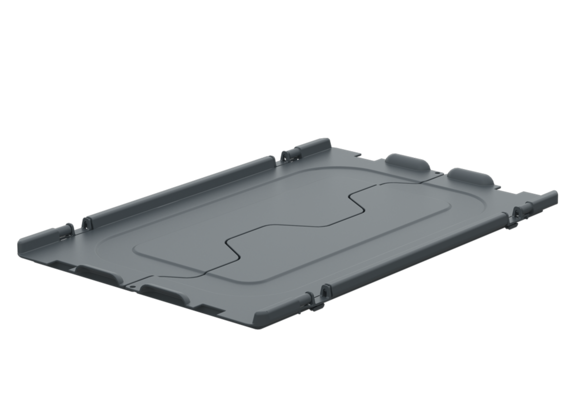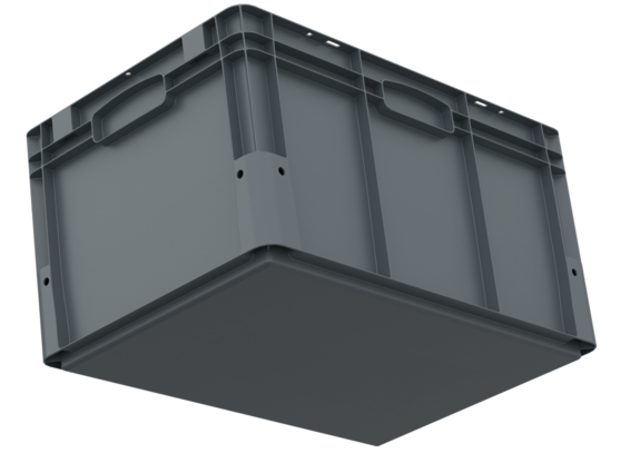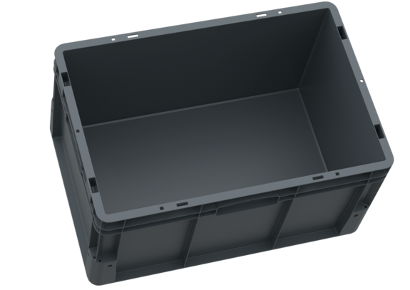 Die stabile Doppelwandkonstruktion im Eckbereich sowie abgerundete Anlaufschrägen garantieren Langlebigkeit und sicheren Transport. Ein integriertes Trennwandsystem ermöglicht die Unterteilung des Behälters und sorgt für eine sichere Fixierung der Trennplatten – ideal für die individuelle Organisation von Kleinteilen oder Komponenten.